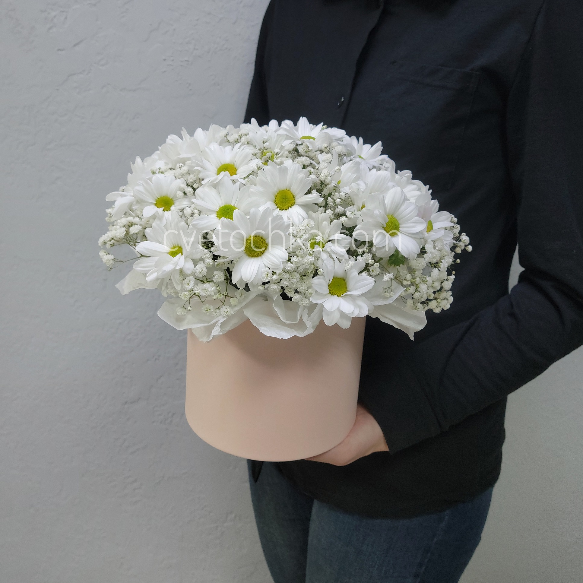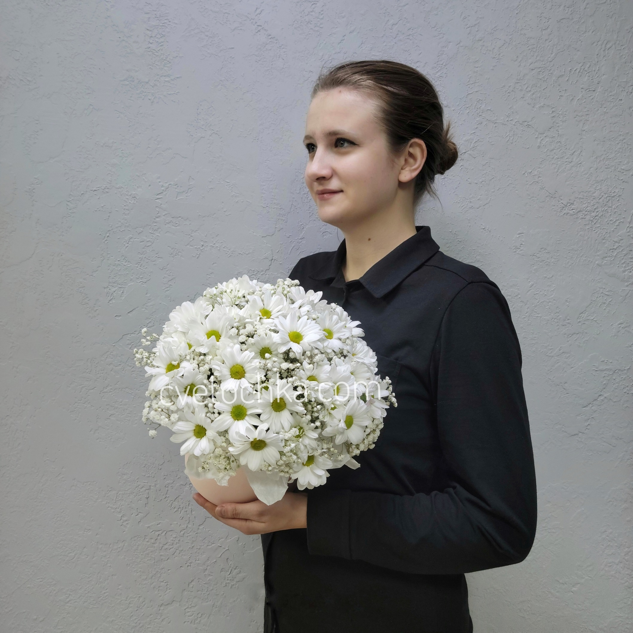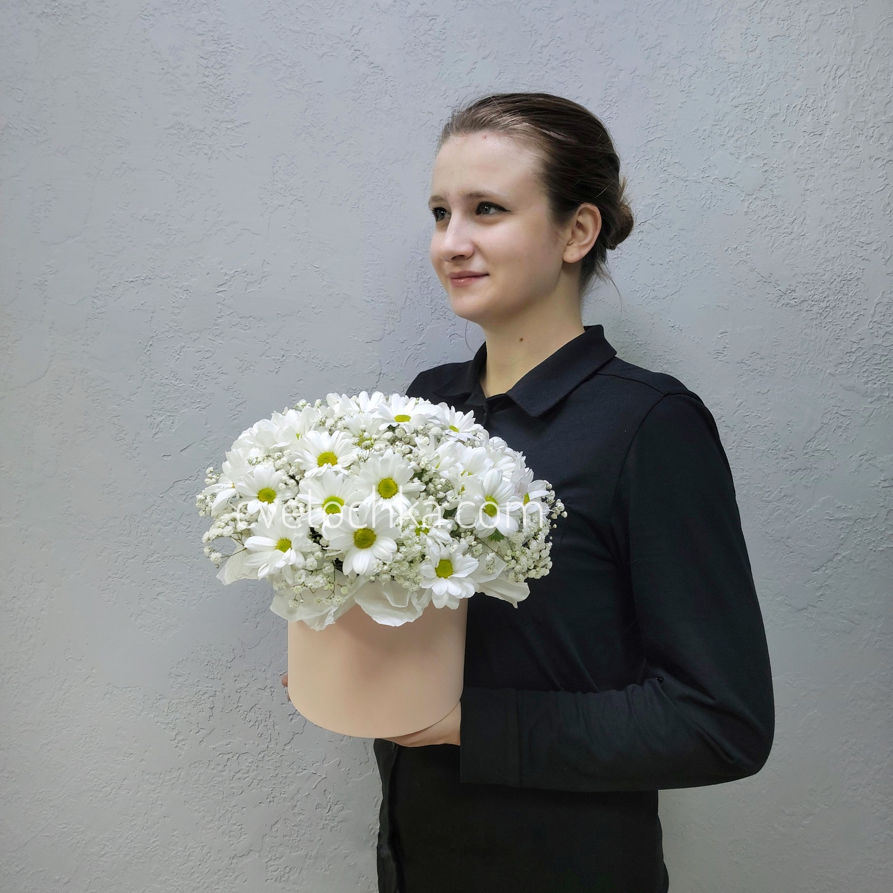 Вы можете купить шляпную коробку с кустовыми хризантемами и гипсофилой с доставкой в Челябинске или оформить самовывоз из любого нашего магазина – подарите элегантность и чистоту, которые останутся в памяти надолго!