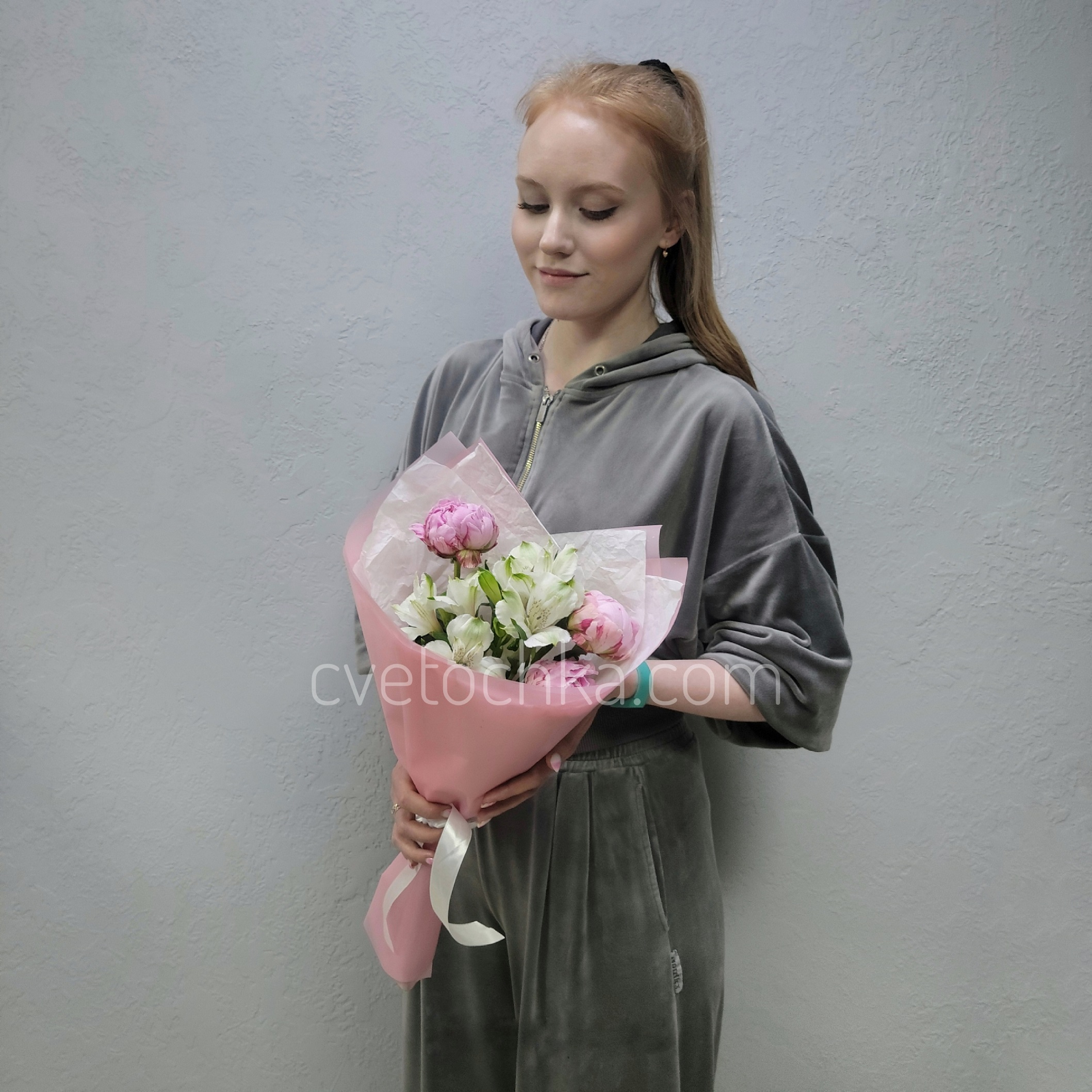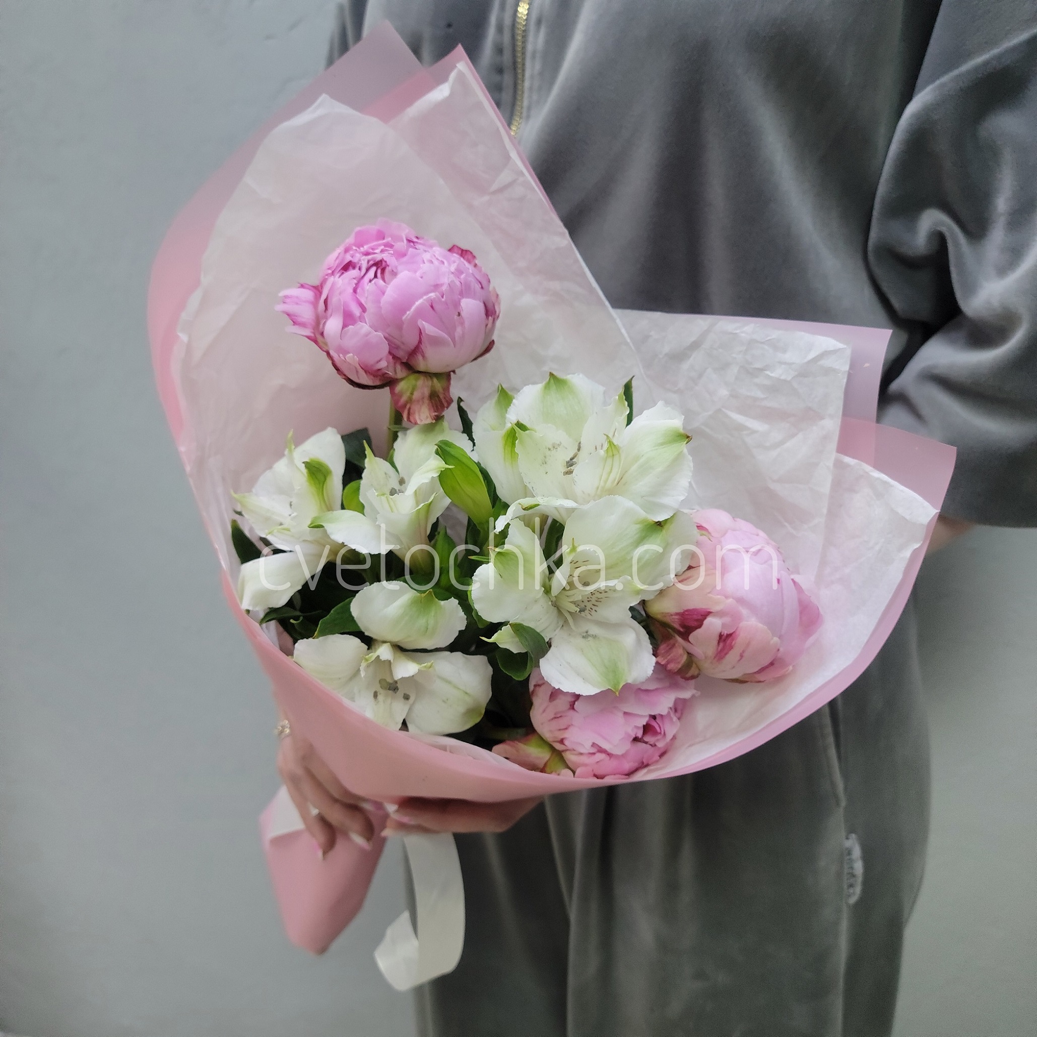 Пионы с альстромериями букет-комплимент
