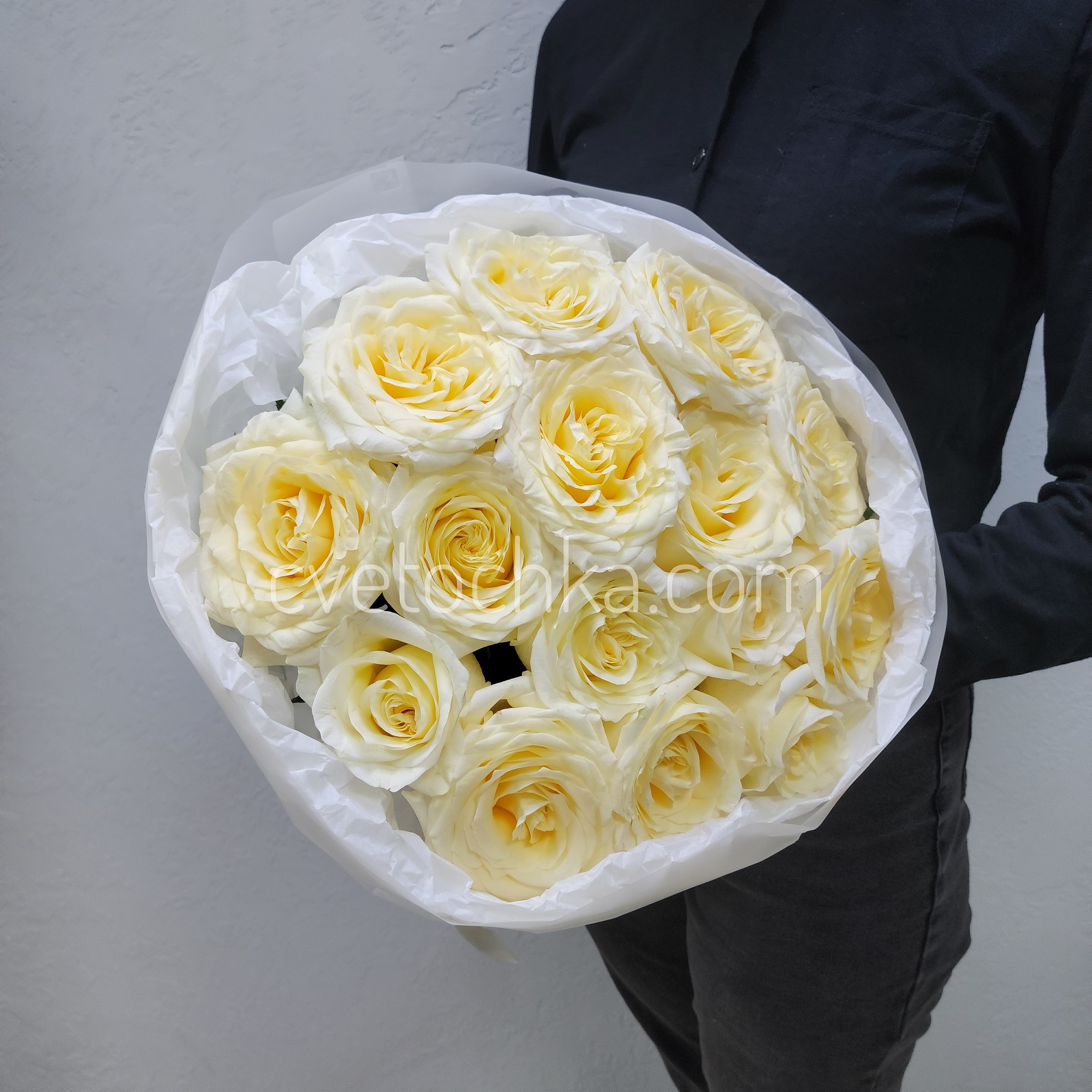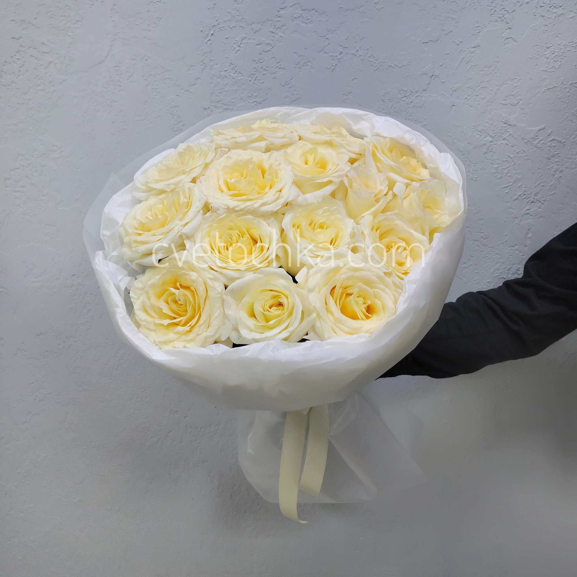 Вы можете купить букет из 15 сливочных роз с доставкой в Челябинске или оформить самовывоз из любого нашего магазина – подарите близкому человеку лучик тепла и нежности!