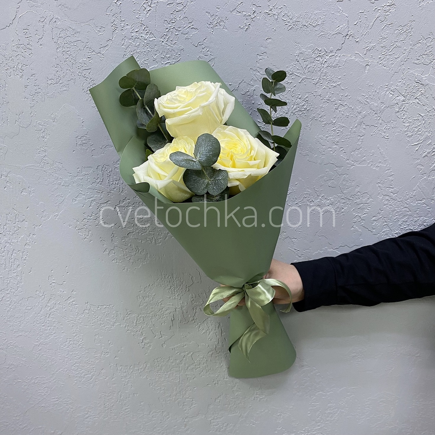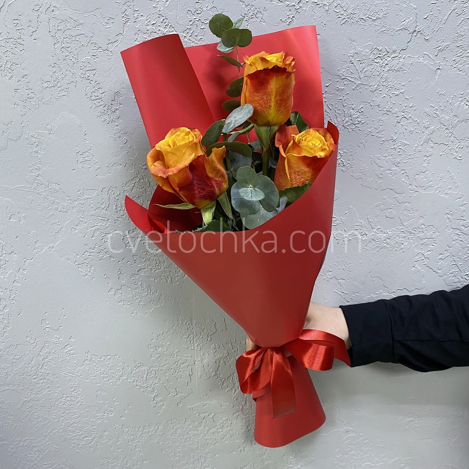 Букет из 3 роз с эвкалиптом. Цвет на выбор