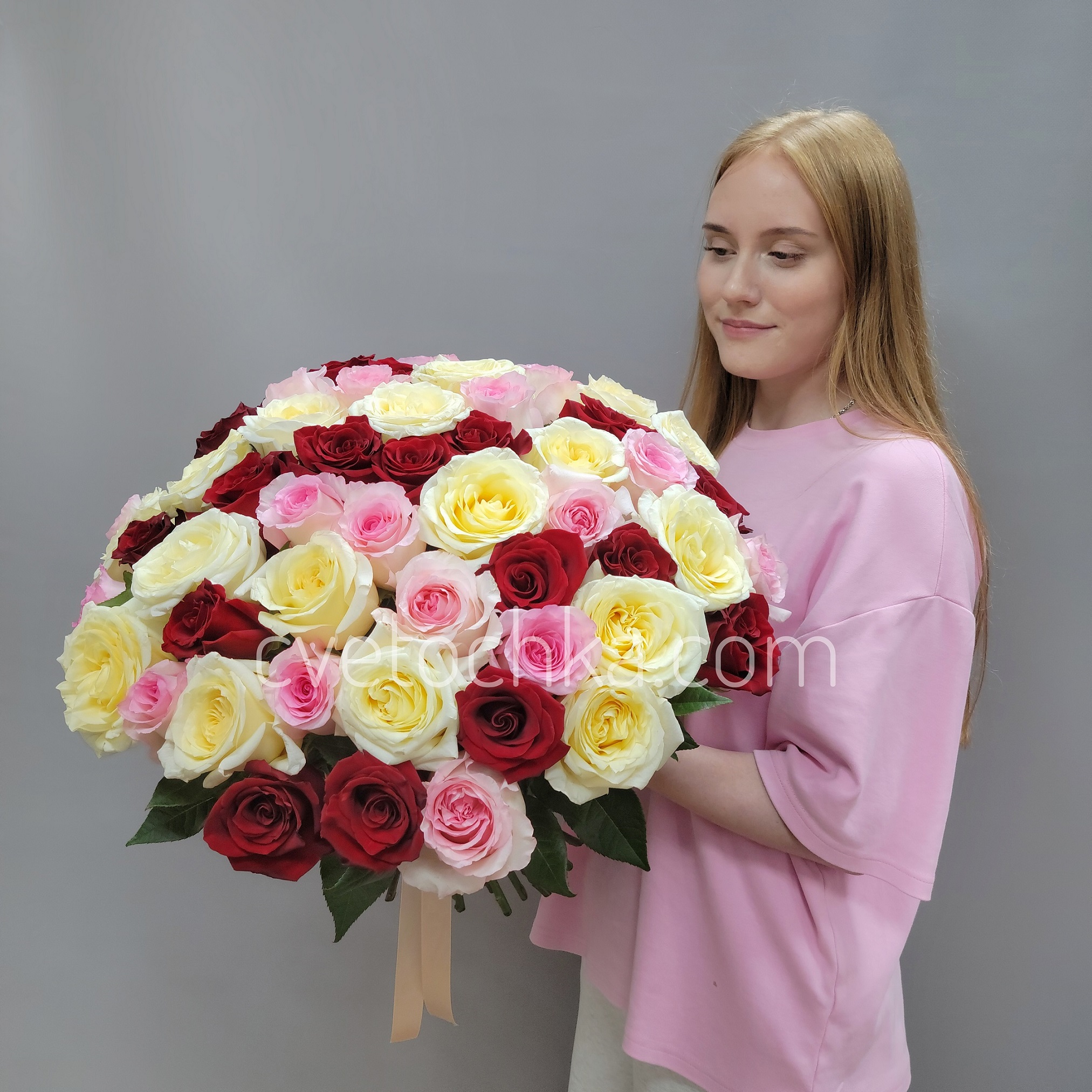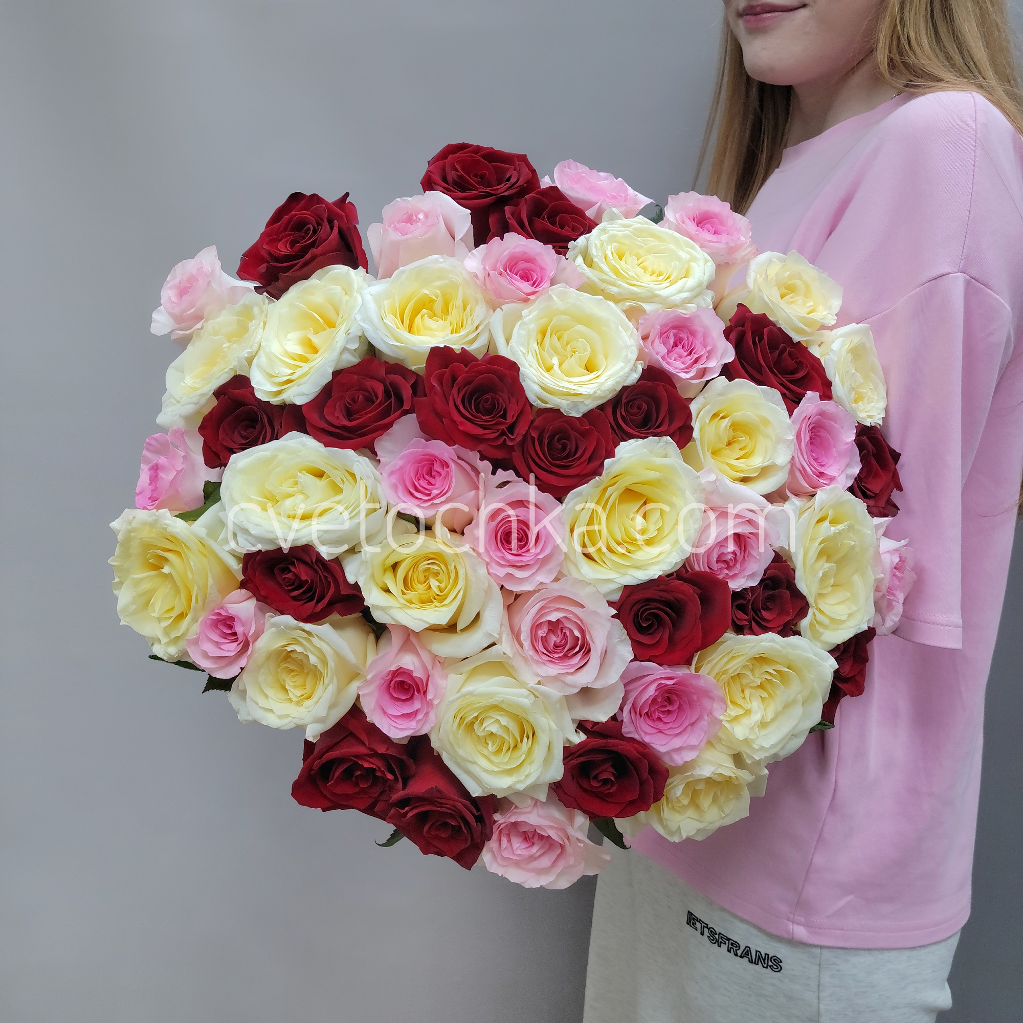 Этот букет – идеальный выбор для самых важных моментов: предложение руки и сердца, годовщина, День рождения или признание в любви, которое запомнится навсегда. Этот букет идеально подойдет: для жены или возлюбленной – как символ многогранности чувств, на юбилей или годовщину отношений, для важного делового партнера – как знак уважения, на торжественное мероприятие или свидание Сочетание трех изысканных оттенков подчеркивает многогранность ваших чувств.