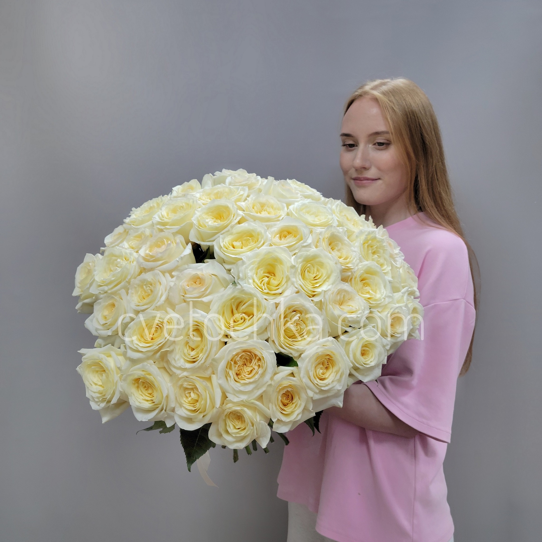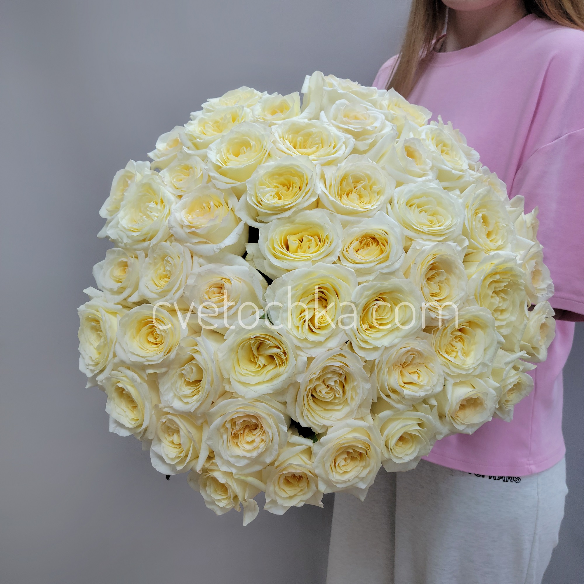 Вы можете купить букет из 51 розы с доставкой в Челябинске или оформить самовывоз из любого нашего магазина - подарите незабываемые эмоции с букетом из 51 сливочной розы!
