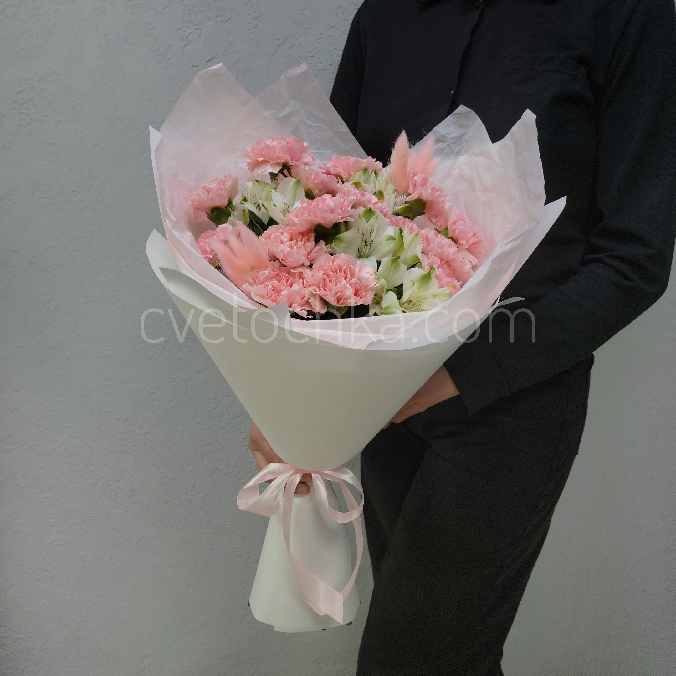 Вы можете купить букет из альстромерий и гвоздик с доставкой в Челябинске или оформить самовывоз из любого нашего магазина – подарите гармонию эмоций и тепло своего сердца!