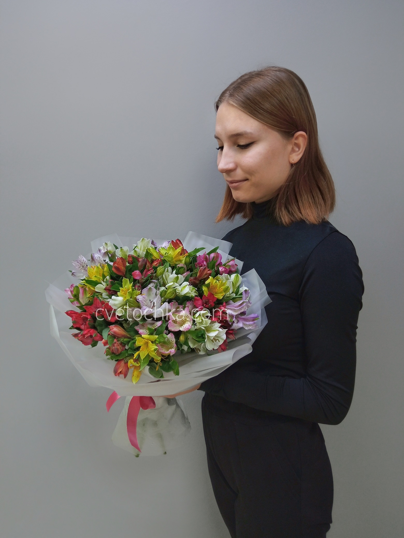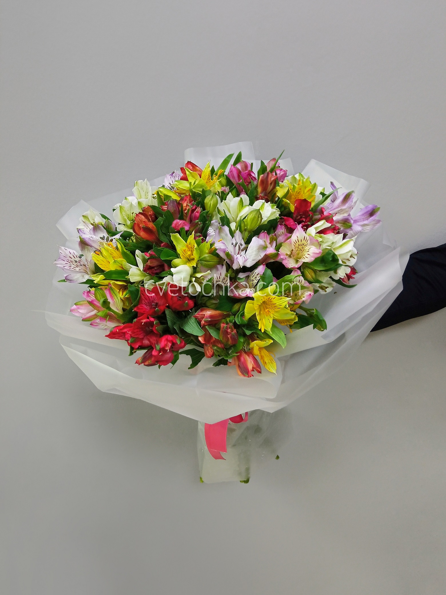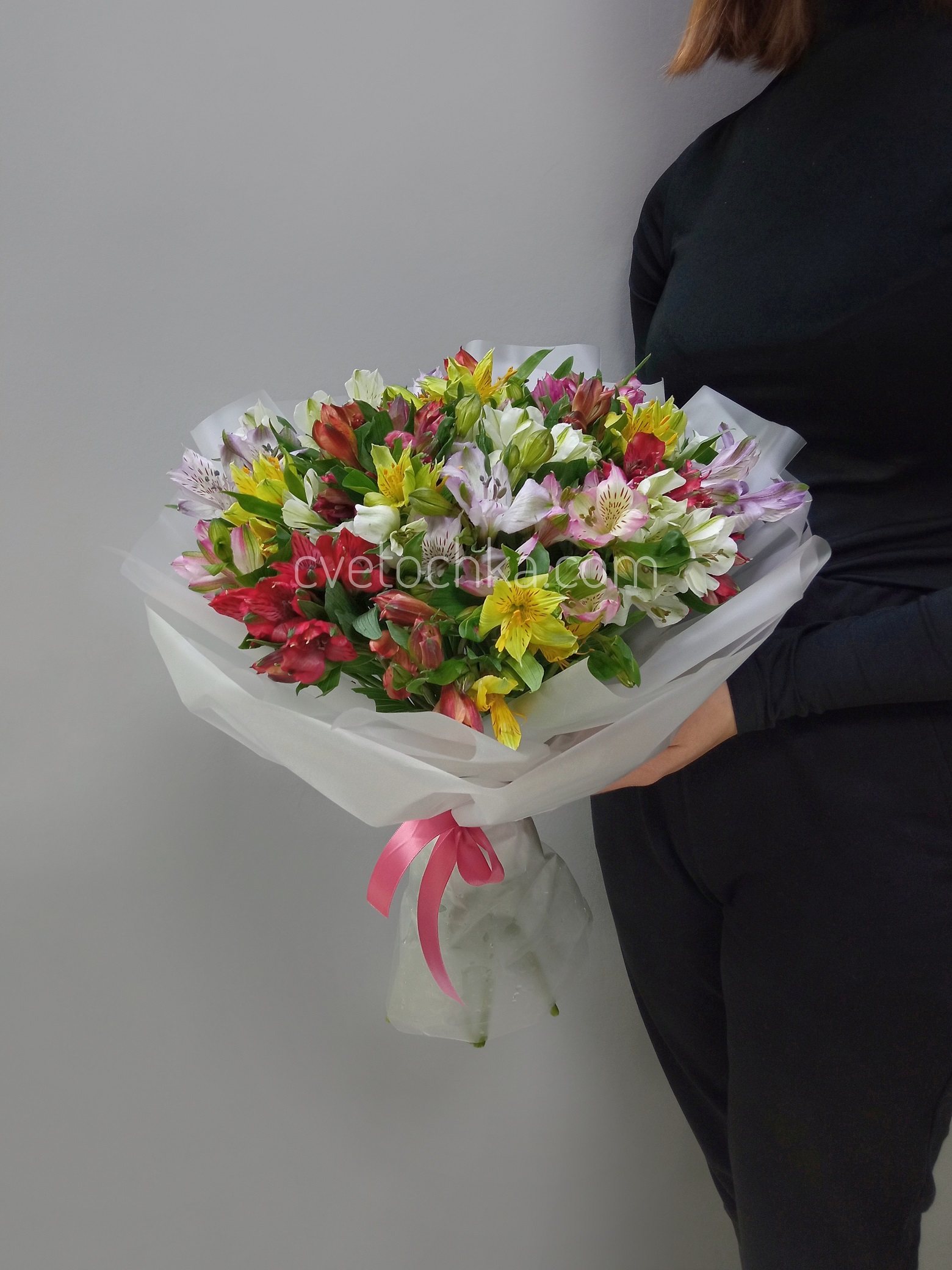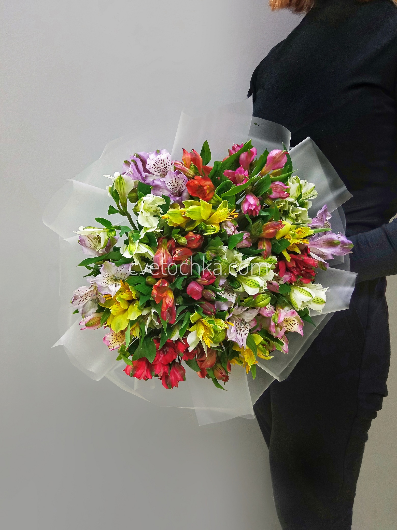 Цвет альстромерий - на Ваш выбор из наличия. Наличие расцветок менеджер предложит при подтверждении заказа или уточняйте заранее написать в Telegram