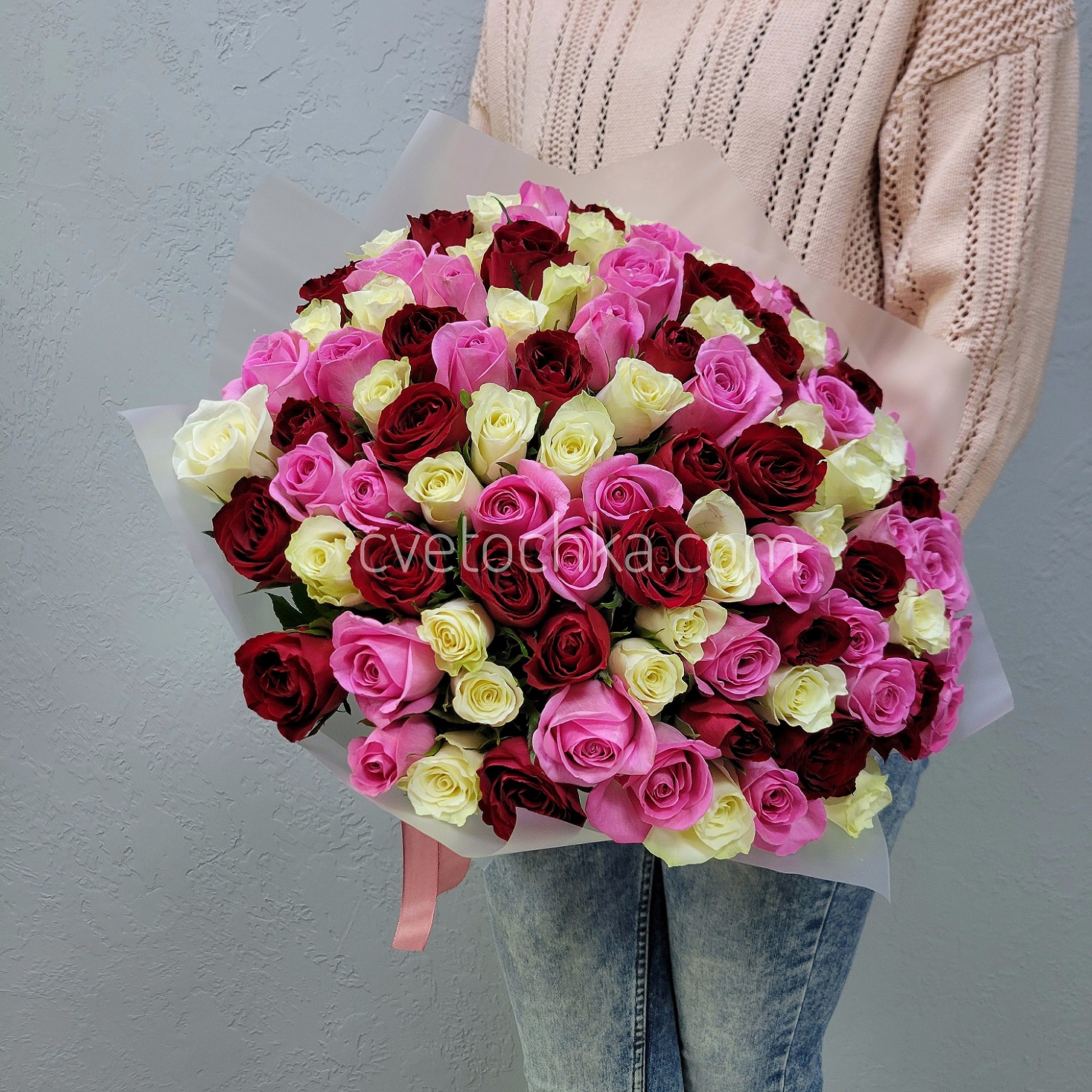 Вы можете купить букет из 101 розы с доставкой в Челябинске или оформить самовывоз из любого нашего магазина