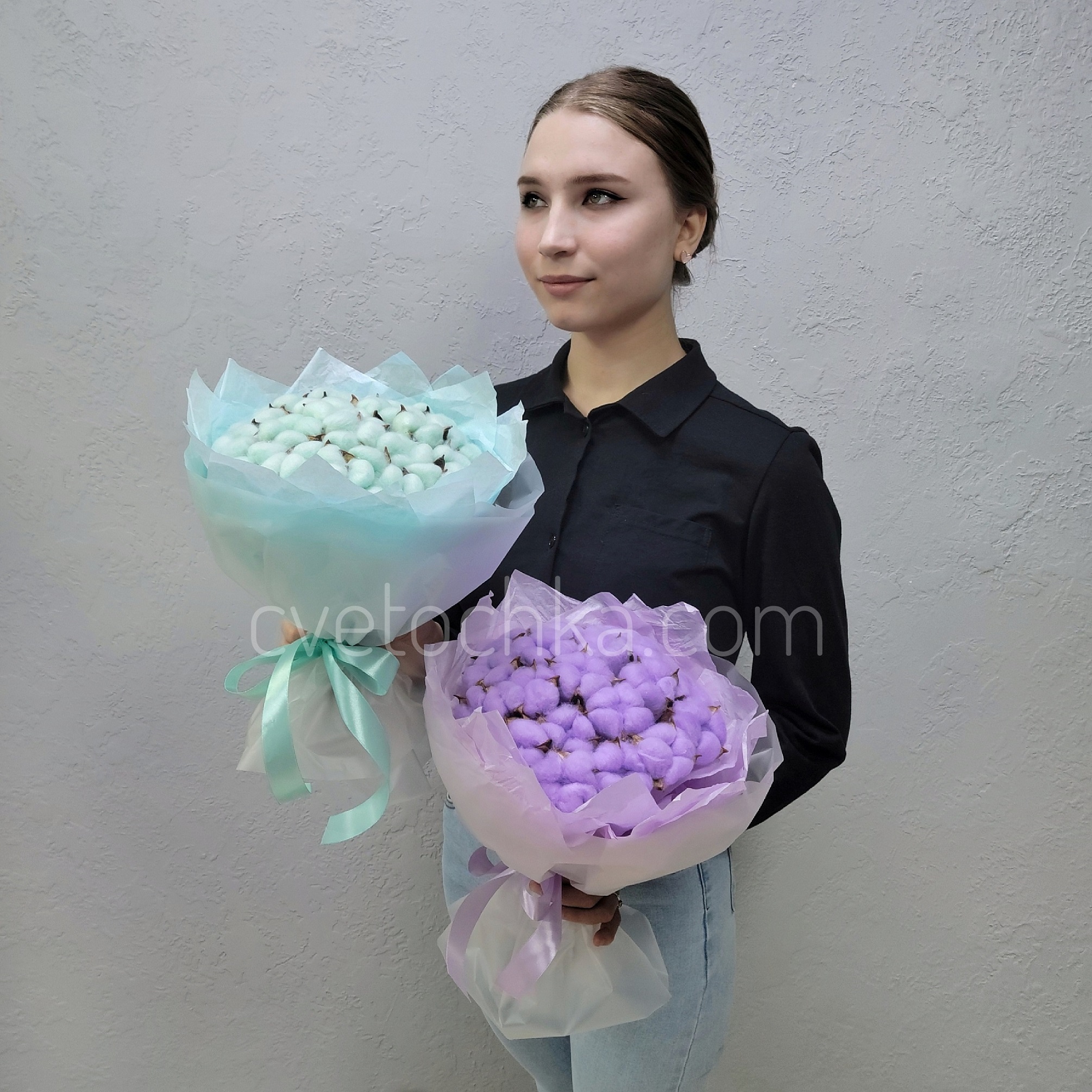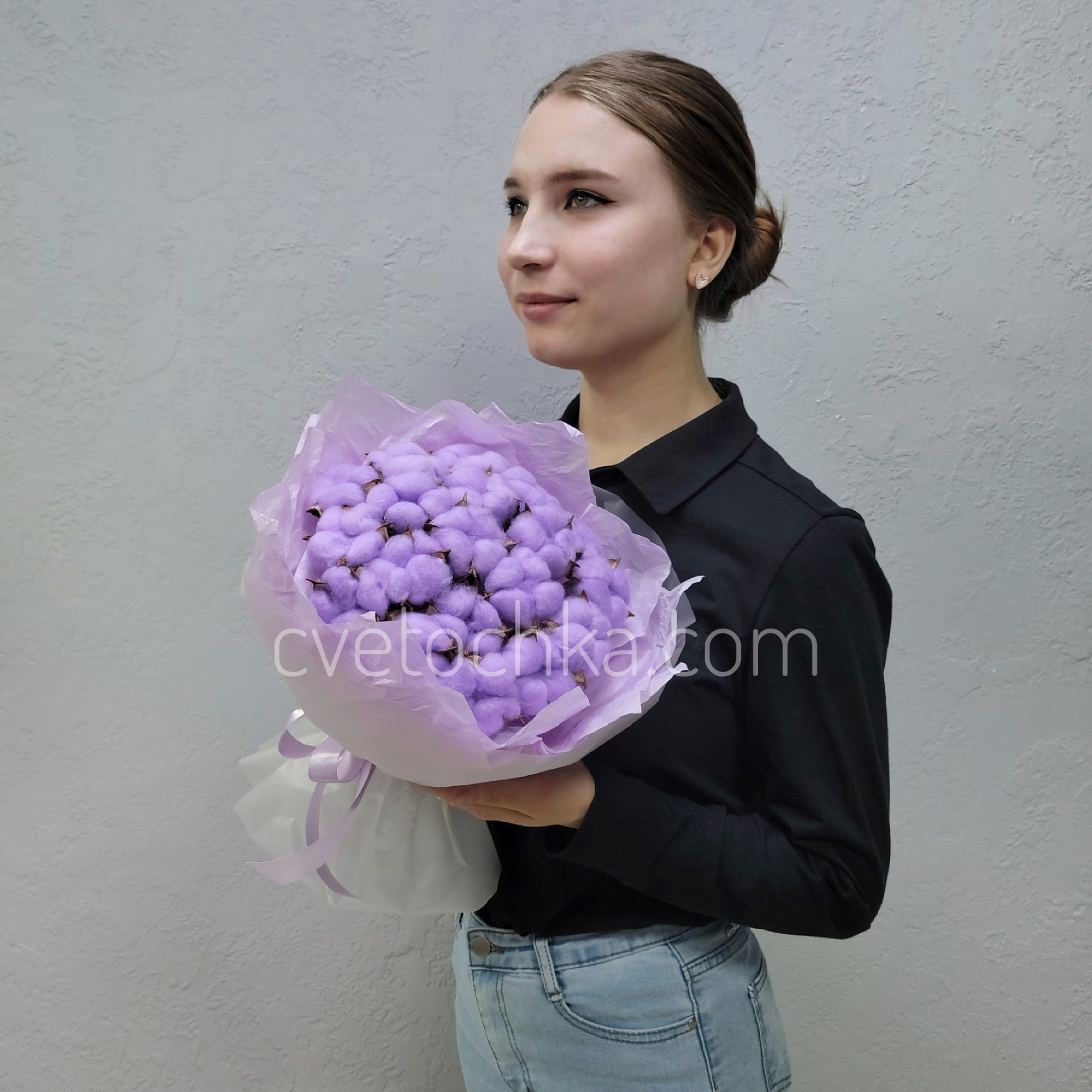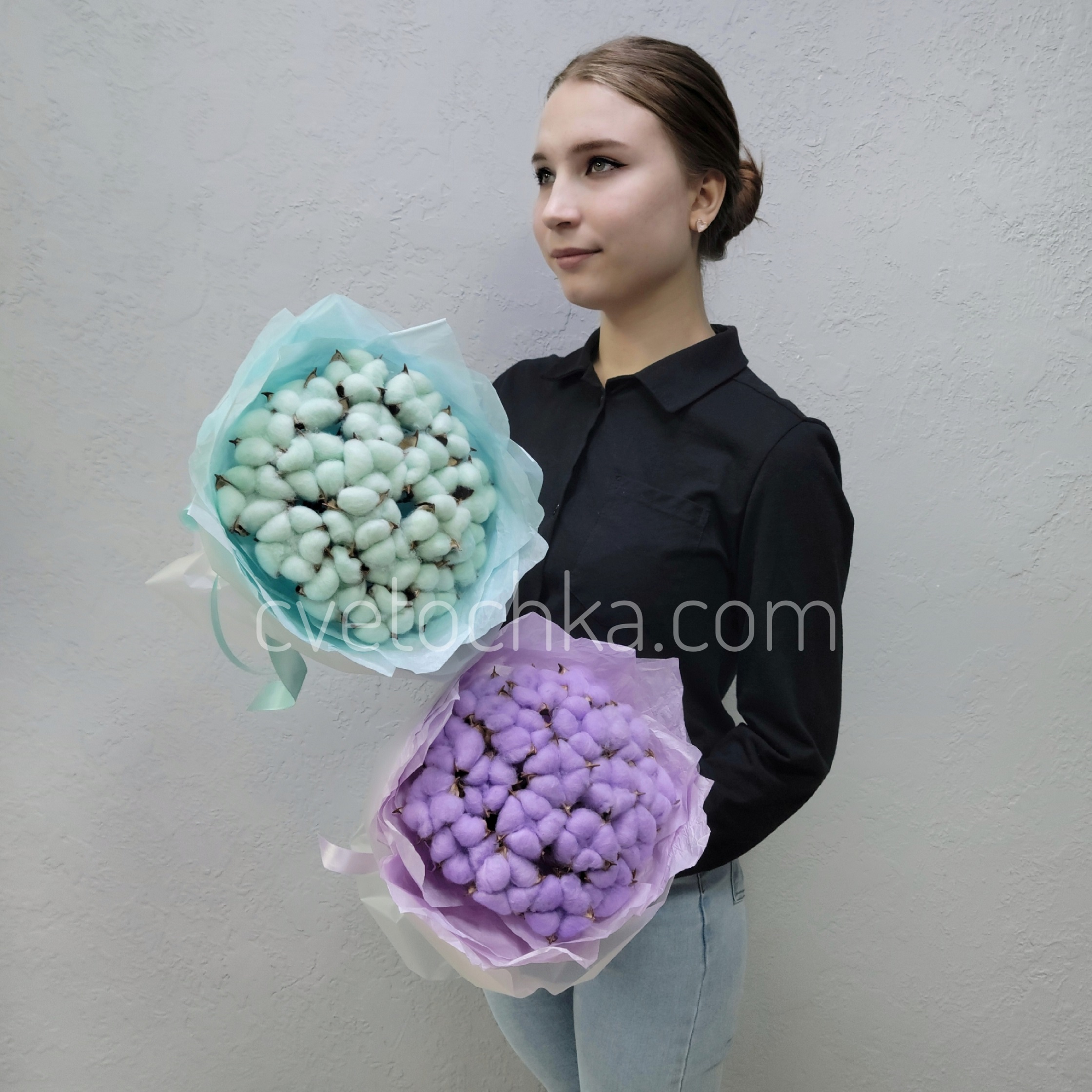 Вы можете купить букет из хлопка с доставкой в Челябинске или оформить самовывоз из любого нашего магазина.